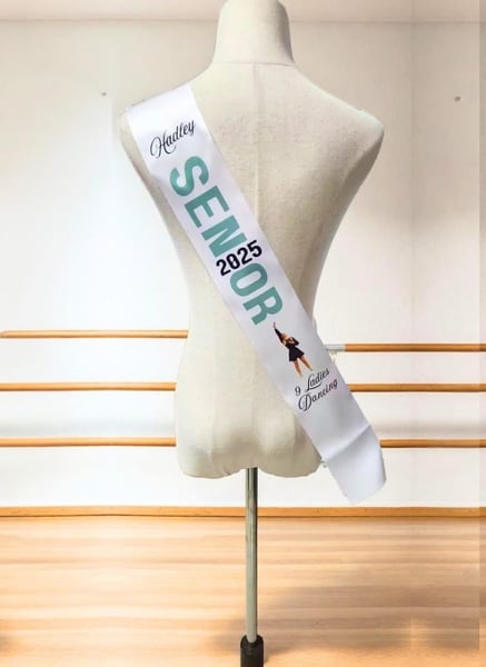 🎀 Plié Promotions offers fully customizable senior sashes that can include your studio logo, class year, dancer names, team titles, and color-coordinated accents. Whether they’re worn for team pictures, senior recognition night, or their final comp weekend, sashes add elegance and a sense of celebration.